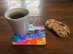 Wipe clean melamine coaster manufactured in the UK with a sustainably sourced Eucalyptus board base.