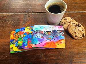 Aberaeron Rainbow Flags Coaster ~ Coster Fflagiau'r Enfys, Aberaeron