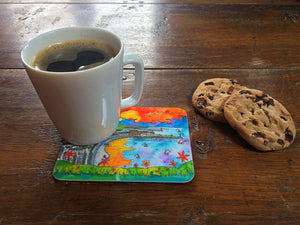 Wipe clean melamine coaster manufactured in the UK with a sustainably sourced Eucalyptus board base.