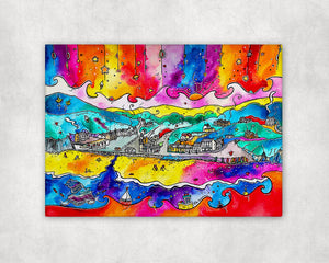 Llangrannog Magical Beach Printed Canvas ~ Canfas Traeth Hudol Llangrannog