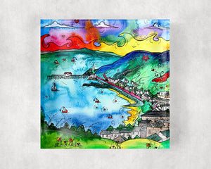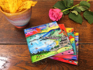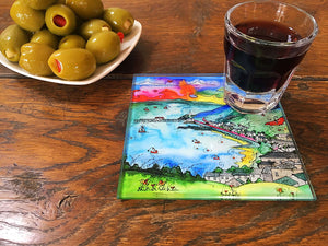 Mumbles Loveboats and Butterflies Glass Coaster ~ Coster Gwydr Cychod Cariad a Ieir Bach yr Haf Y Mwmbwls