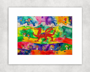Our Colourful Welsh Dragon Mounted Print ~ Print Ein Draig Lliwgar
