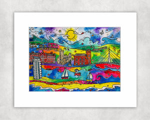 Swansea City by the Sea Mounted Print ~ Print Dinas ger y Môr, Abertawe