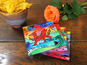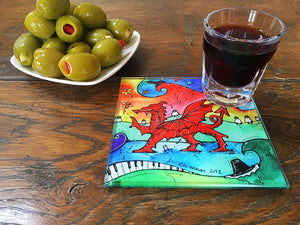 Welsh Dragon Glass Coaster ~ Coster Gwydr Y Ddraig Goch
